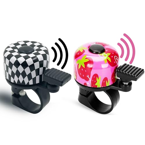 Yeria cykelklocka barn, ringklocka cykel för barn flickor pojkar, barncykel springcykel tillbehör, mini hög cykelklocka för vuxna barn pojkar flickor (jordgubb)