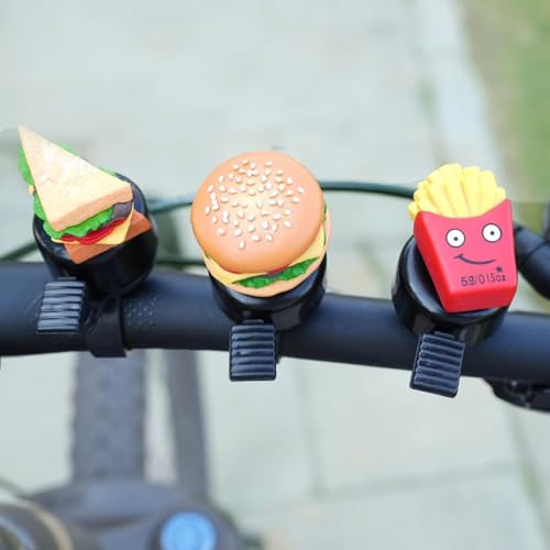 3 stycken cykelklockor, roliga barncykelringklockor, Hamburg pommes frites sandwich cykelklocka vuxna barn pojkar flickor ringklocka cykel klocka för vägcykel, mountainbike och skoter