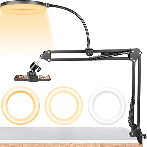 Telefonfäste med ringljus, ChromLives overhead stativ telefonhållare montering för videoinspelning, flexibel artikulerande arm över huvudet telefonstativ uppifrån och ner kamerafäste med ljus