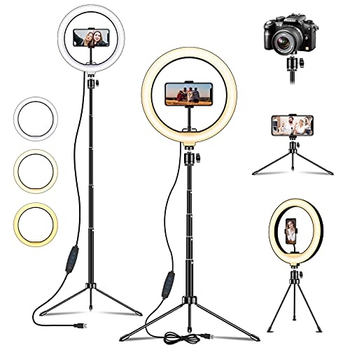 Deerfun 26 cm golvringslampa med utdragbart stativ, 3 färglägen och 10 ljusstyrkor för streaming, Tiktok, video, smink, selfie-fotografering