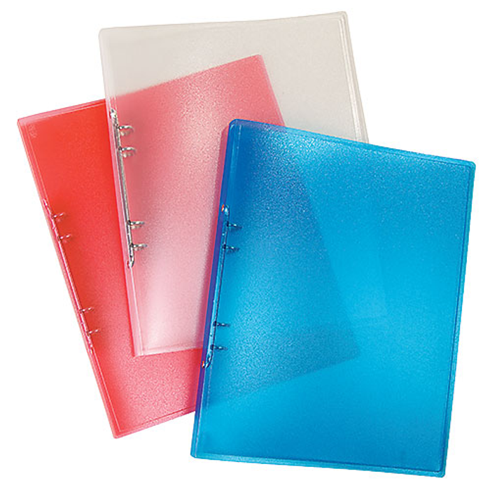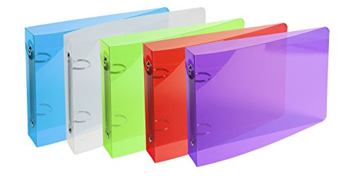 Exacompta - Ref 51099E - Halvstyv PP Crystal ringpärm - 2 runda ringar, diameter 25 mm-Baksida 35 mm - Yttermått: 16,5x24cm - Storlekar för arkivering 12,50x20cm och 14,8x21cm - 5 slumpmässiga färger