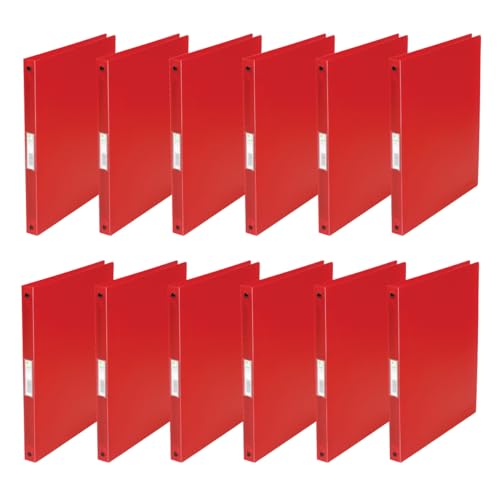 Q-Connect KF02920 ringpärm/12 stycken/A4 4-ring 16 mm/färg: Röd transparent/tillverkad av stark genomskinlig PP-film/22 mm rygg/ringhäftapparat plast/ringpärm smal tunn mapp