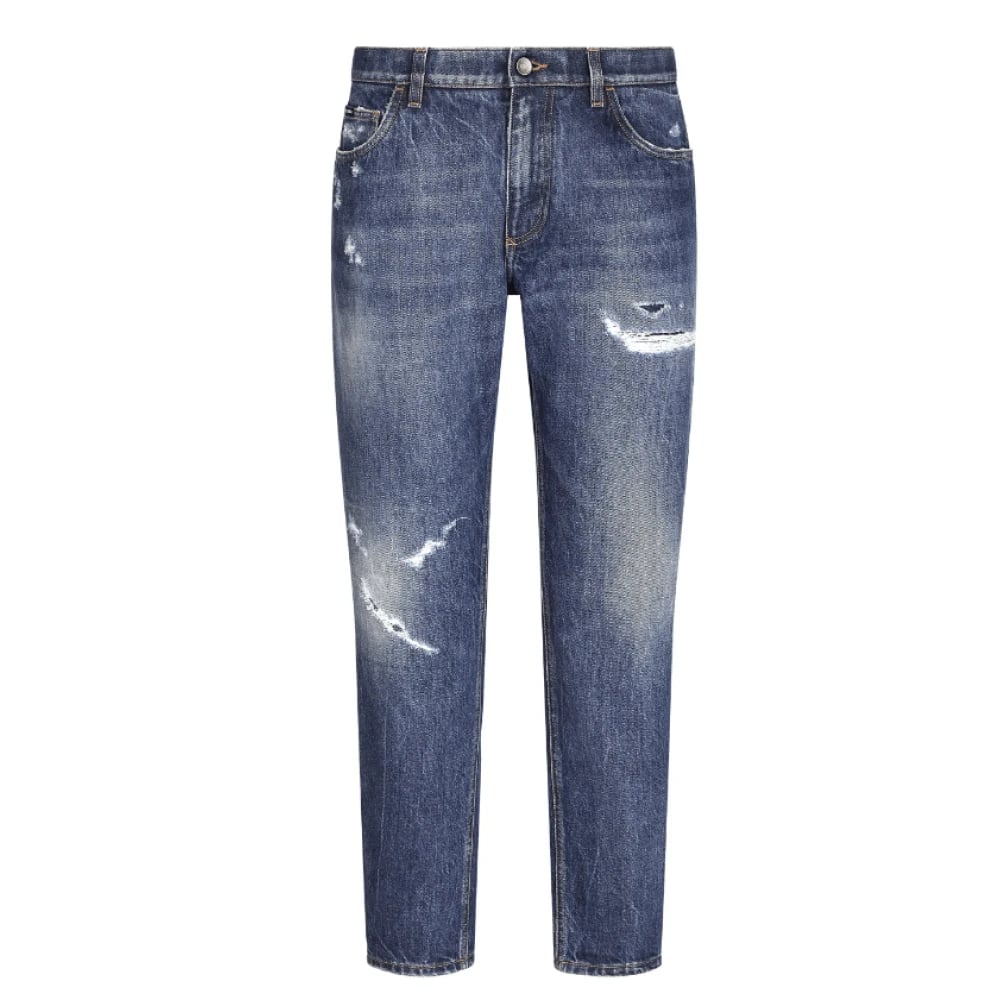 Dolce & Gabbana, Jeans , Herr, M, Denim, Blå Ripped Denim Jeans