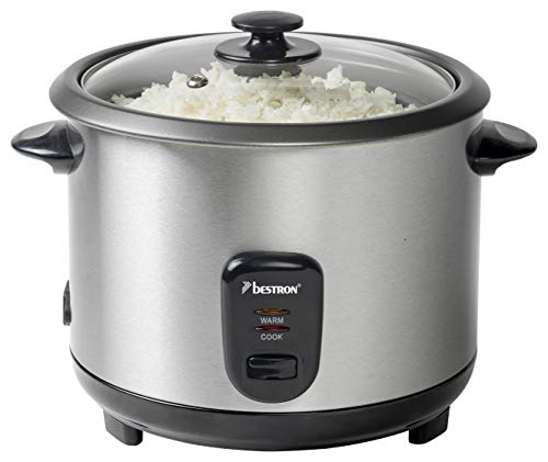 Bestron stor riskokare för 8 – 10 personer, inklusive ångkokarsats, mätkopp och risskad, med non-stick-beläggning och indikatorlampa, diskmaskinssäker, 1,8 liter, 700 W, färg: silver