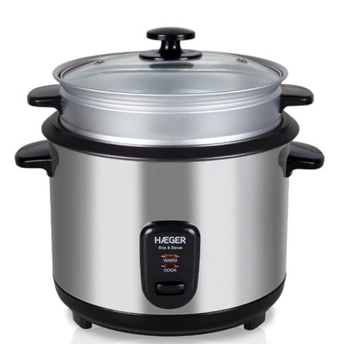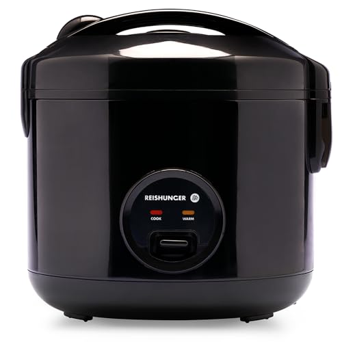 Reishunger Riskokare och ångkokare med keramisk beläggning, svart, 1,8 l – upp till 10 portioner – snabb beredning som inte bränns vid – med varmhållningsfunktion inkl. ånginsats, sked och mätkopp.
