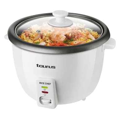 Lacor - 69233 - Elektrisk riskokare med avtagbar inre hink på 1,8 L, non-stick 100% ECO och APFO-fri, glaslock, lysande indikatorer, mått 32 x 28,5 x 25,5 cm, vit