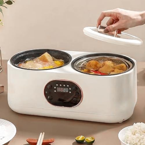 Multifunktionell Kokkruka, Elektrisk Dubbel Riskokare Lunchtillverkare med 2 Inre Krukor, Pekpanel, Håll Varmen, Non Stick, Mini Storlek för Soppa, Gryta, 6 Menyer