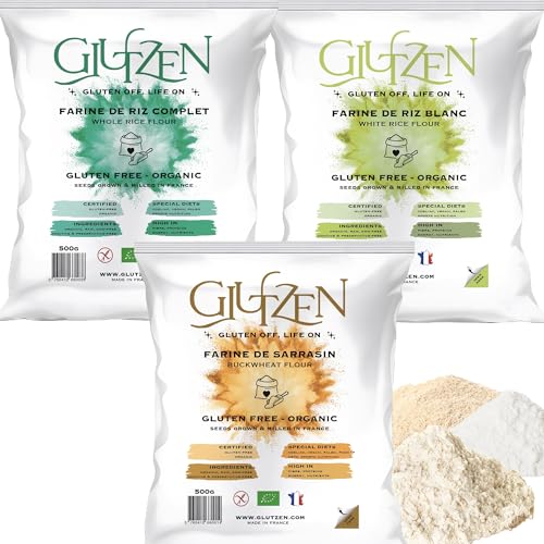 3 Ekologiskt mjöl GLUTZEN, 1x bovetemjöl, 1x helt rismjöl, 1x vitt rismjöl. Celiaki, keto, paleo, vegan, allergenfri. (3x500g)