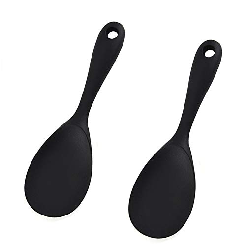 Silikon ris paddel sked set med 2, non-stick värmebeständig köksredge rissked, risskopa, risspatel, rissked paddel, riskokare sked, fungerar för ris, mosad potatis eller mer (svart)