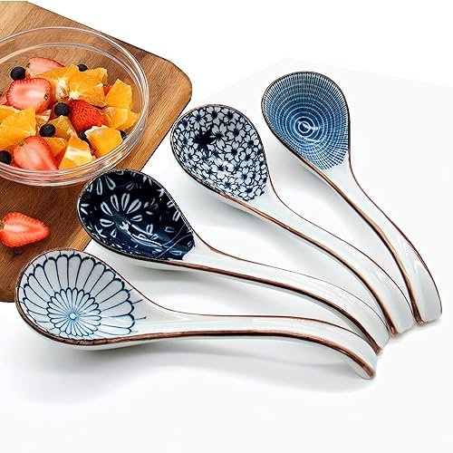 SAMLAK soppskedar 4 st. japanska och koreanska soppskedar böjt handtag keramik ramen kinesisk keramik rissked soppsked för Pho, Wonton, nudlar, FBW04