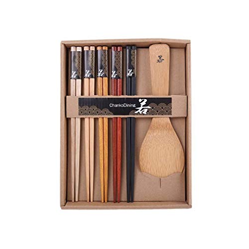 lachineuse - Kinesiska träpinnar och rissked set - 5 träfärger - chopsticks - för riskokare, riskokare - traditionell servis - japansk asiatisk kökspresent