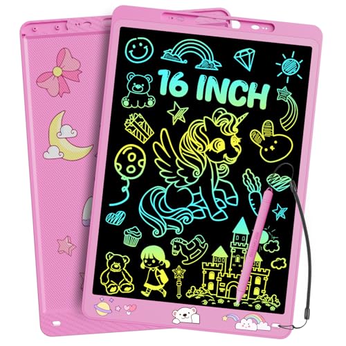 Electight 16 Tums LCD-skrivtavla Ljus Färgglad Ritbräda, Trolleritavla Målartavla med Spärr och Raderfunktion, Ögonvänlig Skriftdyna, Leksakspresenter för Barn, Hemma, Skola, Resor (Rosa)