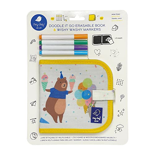 Jaq Jaq Bird 1108076 avtorkningsbar kritbok, mini målarbok björn inklusive 4 Wishy Washy-pennor, för barn från 3 år, återanvändbar ritbräda för hem och på språng