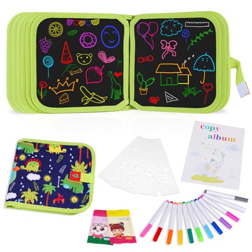 OSDUE Torkbar målarbok, 16 sidor vattenmålarbok för barn, bärbar graffiti, ritbräda med 12 färgpennor och kopieringsalbum, för barn 3 4 5 6 år gamla pojkar, flickor