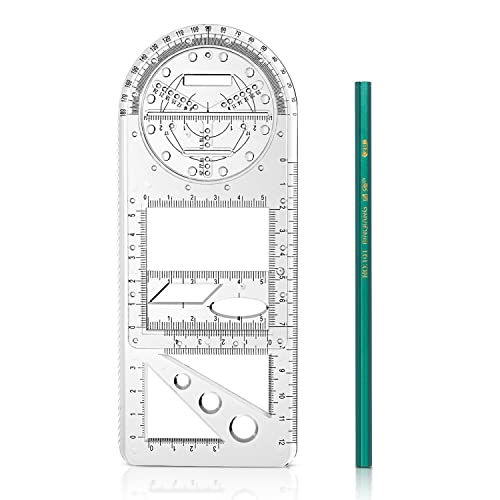 Vicloon Multifunktionell geometrisk linjal, ritmall mätverktyg plast mätlinjaler med rörlig gradskiva och liten linjal fri penna skola kontorsmaterial (triangelstil)