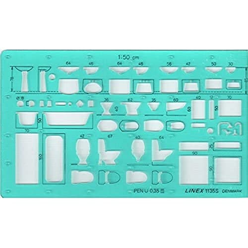 Linex 1135S sanitetsstencil, skala 1:50, bläckflikar, 165 x 95 mm, sanitetsteknik, ritmall