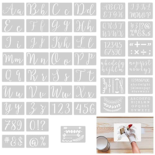 BANTI Bokstäver stencil ritmall mallar för målning vintage stora väggmallar målningsmallar 47 stycken stencil ornament bokstavsmall postmall för konst scrapbooking trämålning