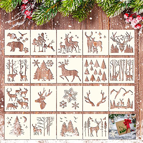 Abeillo 20 stycken hjortstenciler, 15 x 15 cm plast stenciler älg skog snöflingor stencil jul ritmallar, återanvändbara mallar för gör-det-själv julkort scrapbooking