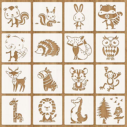 O-Kinee-Kinee -Kinee Djurmålningsmallar, 16 stycken ritmallar målningsmallar av plast, stenciler, återanvändbara för scrapbooking fotoalbum, gör-det-själv-presentkort, presenter barn