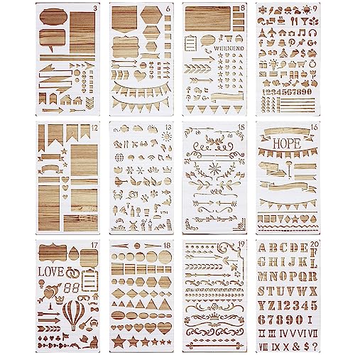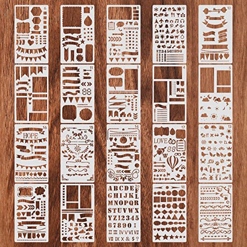 QUIIEOSKIA 20 st. bullet stenciler, journal, planerare, stenciler, plast, återanvändbara, gör-det-själv-dagbok, ritmallar för anteckningsbok, dagbok, scrapbook, fotoalbum, dagbok, dekoration