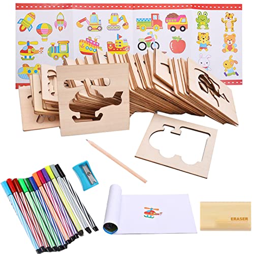 Liuer stenciler, set, 60 st journal, tillbehör, stenciler av trä, ritmallar, barn, för bullet, journal, scrapbooking, fotoalbum gästbok, gör-det-själv, presentkort för pojkar och flickor, barn