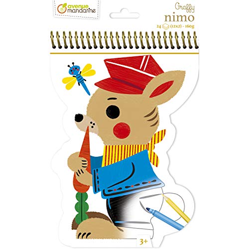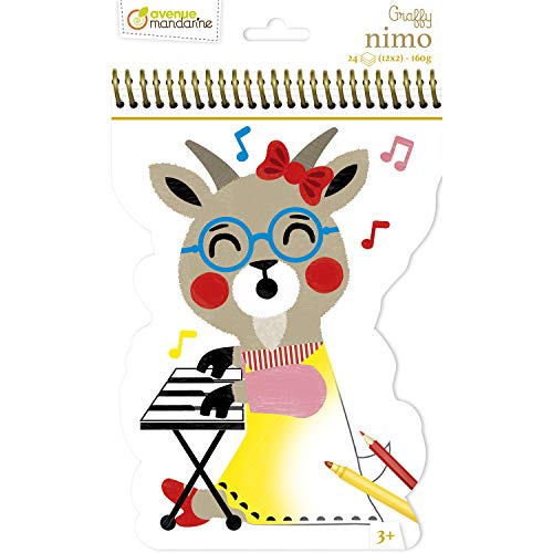 Avenue Mandarine GY114C Graffy Nimo, spiralblock för målning, 160 g, ritpapper, med 12 motiv x 2, perfekt för barn från 3 år, 1 st, get