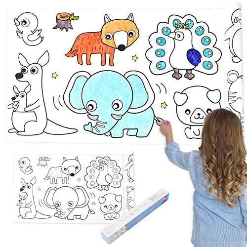 CAINCAY Skärbar ritrulle för barn, målarrulle för barn, Graffy Roll att måla, målarrulle för barn, ritpapper, pappersrulle, målning, barn, målarpapper, rulle för barn (djurvärld)