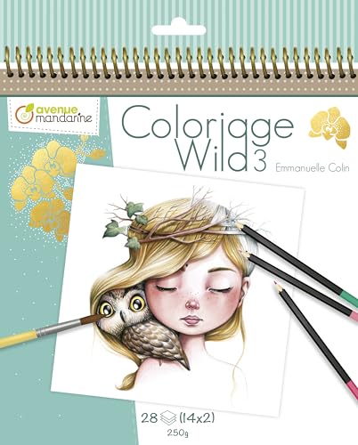 Avenue Mandarine GY077C Samlarmålarbok Wild, Edition 3, gjord av ritpapper 250 g, med mikroperforerade ark, 28 ark (14 ritningar x 2), perfekt för barn från 5 år, 1 styck