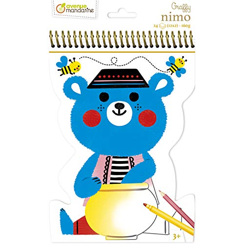 Avenue Mandarine GY115C Graffy Nimo, spiralblock för målning, 160 g, ritpapper, med 12 motiv x 2, perfekt för barn från 3 år, 1 bit, björnar