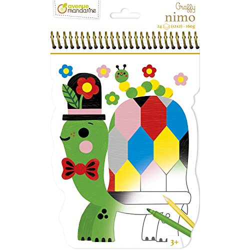 Avenue Mandarine GY113C Graffy Nimo, spiralblock för målning, 160 g, ritpapper, med 12 motiv x 2, perfekt för barn från 3 år, 1 st, sköldpadda