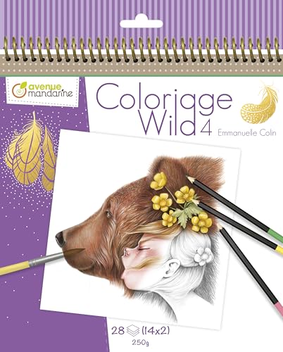 Avenue Mandarine GY120C - Samlarmålarbok Wild, 5:e Edition, gjord av ritpapper 250 g, med mikroperforerade blad, 28 ark (14 ritningar x 29, perfekt för barn från 5 år, 1 st