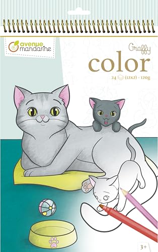 Avenue Mandarine GY105C – Målarblock Graffy Color, ritpapper 120 g, mikroperforerat, 2 x 12 mönster = 24 ark, lämplig för barn från 3 år, 1 styck, mamma/barn husdjur