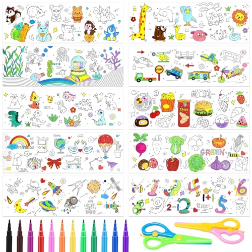 Rebanky 10 rullar ritpapper för barn 30 cm x 90 färgark för barn utrymme färgrulle barnritning med 12 färgade pennor och 2 par saxar