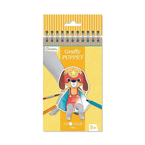 Avenue Mandarine GY009O målarblock graffy docka, 250 g ritpapper med 12 motiv x 2, perfekt för barn från 5 år, 1 st, superhjältar för djur