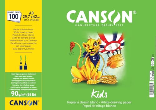 CANSON Kids, vitt ritpapper, lättkornig, 90 gsm, ark, A3-29,7 x 42 cm, vit, 100 ark