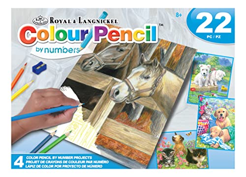 Royal & Langnickel – måla efter siffror med färgpennor, husdjur, set om 4, innehåller ritpennor och vässare, för vuxna och barn från 8 år