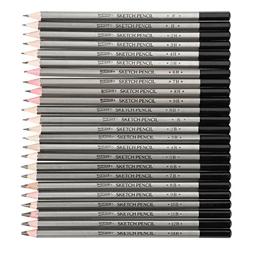 Grafitblyertspennor, 24 delar, giftfri skisskonst Grafit ritpennor 9H-14B