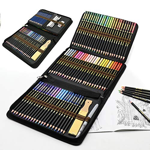 Färgpennor, färgpennor rituppsättningar, ritpennor målarset skisspennor set blyertspennor för skissning och ritning professionell konstset och kit väska 72 stycken, set för målarböcker för vuxna eller barn