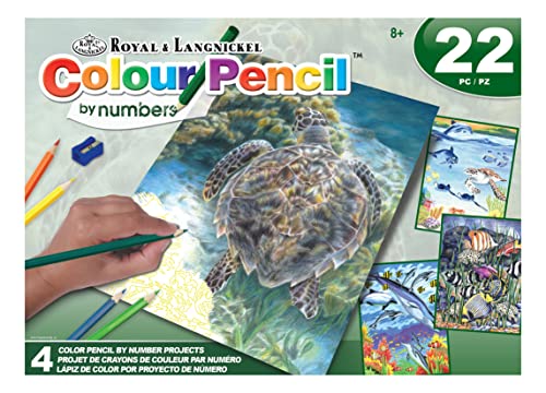 Royal & Langnickel – måla efter siffror med färgpennor, havsdjur, set om 4, innehåller ritpennor och vässare, för vuxna och barn från 8 år