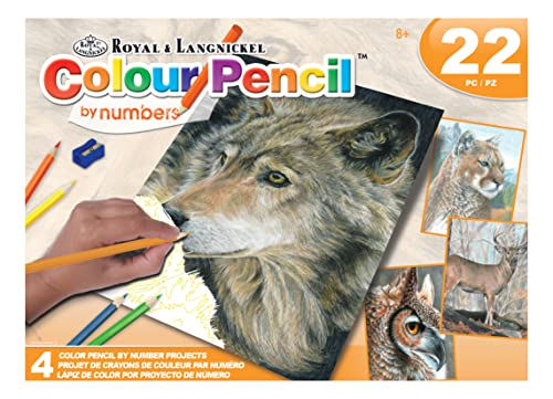 Royal & Langnickel – måla efter siffror med färgpennor, vilda djur, set om 4, innehåller ritpennor och vässare, för vuxna och barn från 8 år