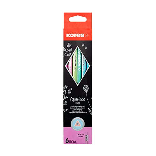 Kores – grafitpennor set – Grafitos stilpennor, HB, mjuka, triangulära – ritpennor, HB-pennor med gummi, HB-pennor, pennset, konsttillbehör – paket med 6 pennor med gummi