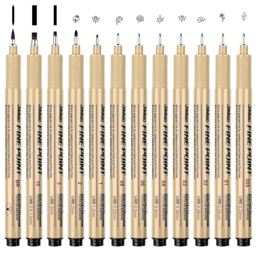HFDONGL 12 stycken fineliner svart fineliner set filtpennor svart ritpennor professionellt set för illustrationer skissa teknisk ritning