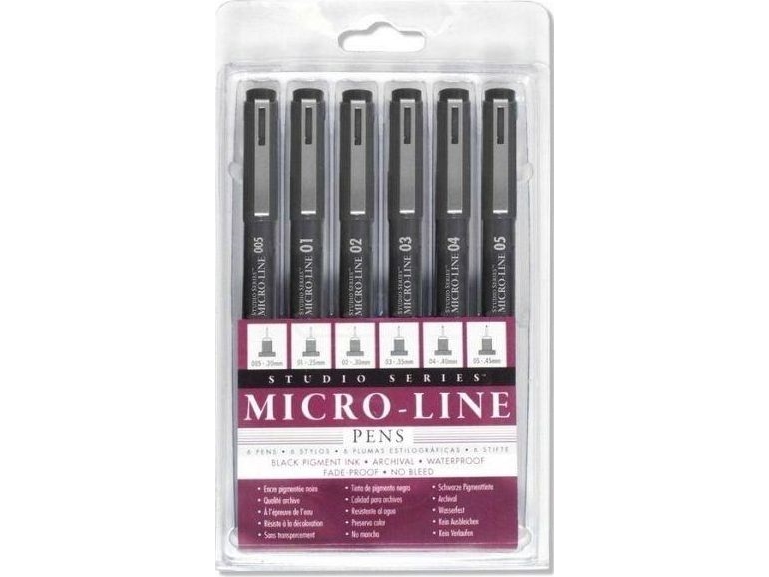 MAIKEDEPOT Mikrolinje-pennor 6 storlekar Fineliner bläckpennor svarta ritpennor vattentät precision bläck multiliner-pennor manga pennor för konstnärsillustration, kalligrafi, skissning, teknisk