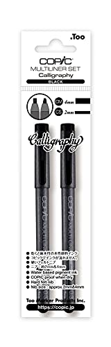 Multiliner svart kalligrafiset, ritpennor med kilspets 2 och 3 mm, vattenbeständigt pigmentbläck i svart, för rita, bokstäver och kalligrafiskt skrivande