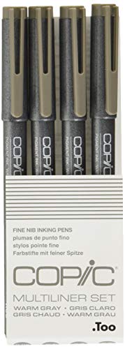Copic 22075624 multiliner-set varm grå, 4 olika linjetjocklekar, ritpennor med vatten-och alkoholbeständigt pigmentbläck, för skisser, illustrationer och outlines, 4-pack