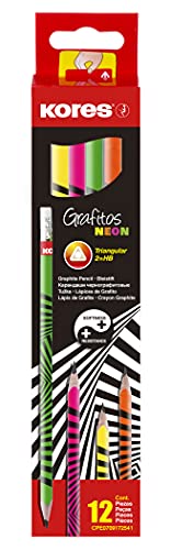 Kores Grafitos Neonpennor – HB, mjuka, triangulära – ritpennor set, konsttillbehör – paket med 12 med gummi