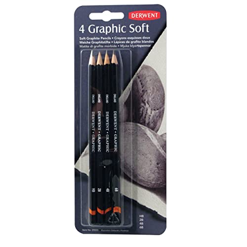 Derwent 39005 grafiska mjuka grafit ritpennor, set med 4, professionell kvalitet, 39005