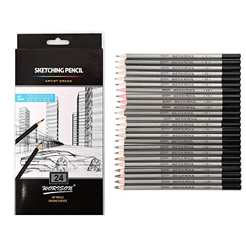 24Pcs Ritpennor Set, Skiss Konst Grafit Pennor 9H-14B för Professionell Teckning och Skissning, Mjuk och Präcis för Studenter, Konstnärer och Hobbybruk