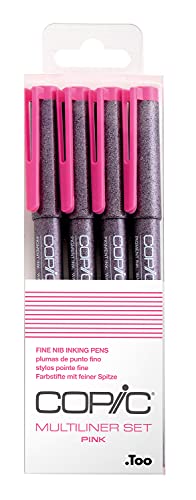Multiliner set rosa, 4 pennor i 4 olika linjebredder, ritpennor med vatten- och alkoholbeständigt pigmentbläck, för skisser, illustrationer och outlines