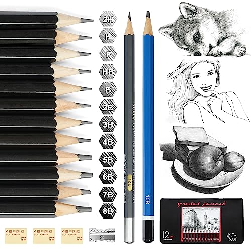 Vicloon Professionellt set med skiss- och ritpennor, 14 st skisspennor, konstpenna med 3 st radergummi och 1 st pennvässare för nybörjare, barn eller professionell konstnär